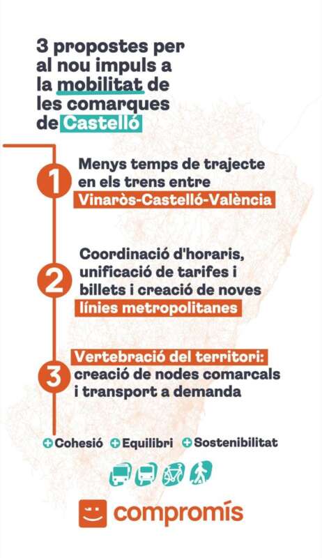 “Compromís reduirà els temps del trajecte de tren Castelló a València a 50 minuts; reduirà el traçat entre Vinaròs a Castelló a 43 minuts i connectarà amb tren Vinaròs i València amb una hora i 33 minuts. Aquesta major agilitat en les connexions ferroviàries, que és fruit d'una reestructuració organitzativa i de la implantació de trens més ràpids, suposarà una millora de la qualitat de vida, de la mobilitat, de la sostenibilitat, però a més anirà acompanyada d'un augment de freqüències”.