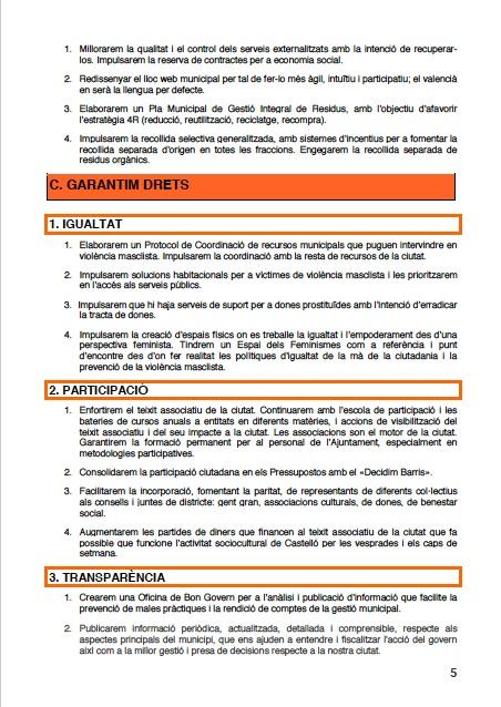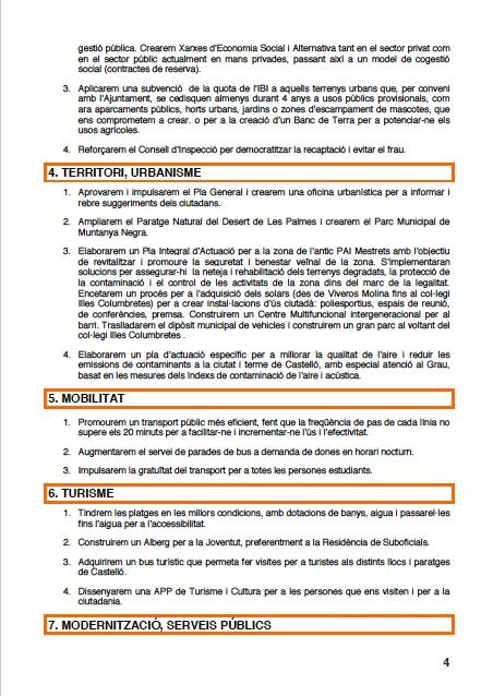 Durant la presentació del programa, l'edil ha explicat que "un dels compromisos que volem adoptar es convertir en parc natural Muntanya Negra, així com construir 200 habitatges per a lloguer social i també posar contenidors de reciclatge cada 100 metres, per fer de Castelló una ciutat més neta i que lluita contra el canvi climàtic".