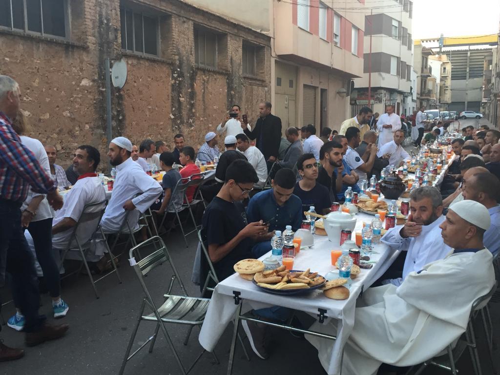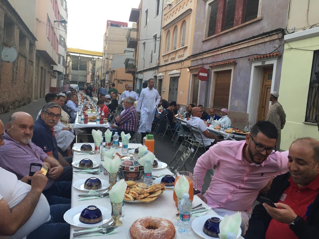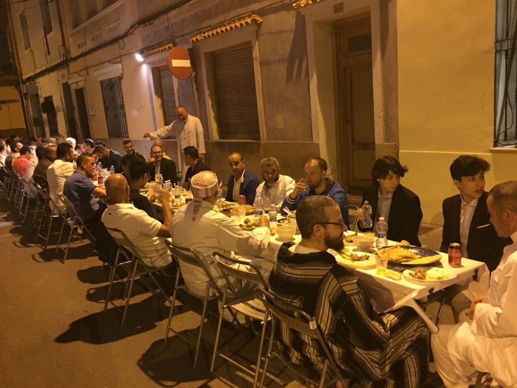 El Ramadán o mes del ayuno de los musulmanes llega a su recta final. Las comunidades islámicas de todo el mundo ayunan desde el amanecer hasta el ocaso durante 29 o 30 días en este mes sagrado en el que se conmemora la revelación del Corán, libro sagrado de esta religión. Por este motivo, los musulmanes y musulmanas de Vila-real organizaron anoche en la calle Santa Bárbara, vial en el cual se ubica una de dos mezquitas de la ciudad, un Iftar o ruptura del ayuno abierto a los vecinos de la ciudad para acercar el sentido de esta celebración; el de conexión con la comunidad, la solidaridad con el que menos tiene, la fe y la espiritualidad.