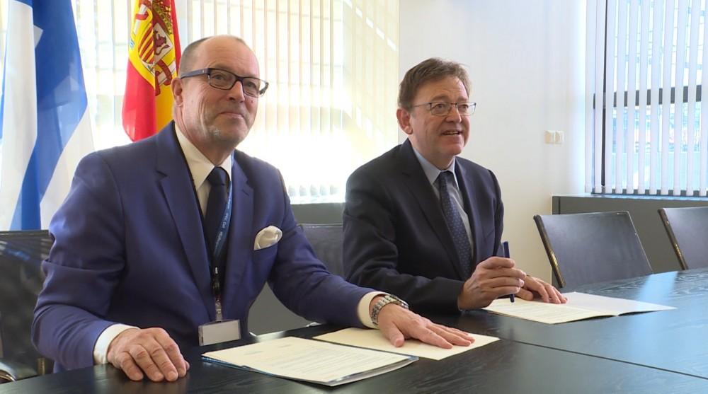 El president de la Generalitat, Ximo Puig, y el presidente de la región finlandesa de Helsinki-Uusimaa, Ossi Savolainen, han firmado un acuerdo de cooperación para potenciar la colaboración estratégica en las áreas de empleo, investigación e innovación, educación y cultura.