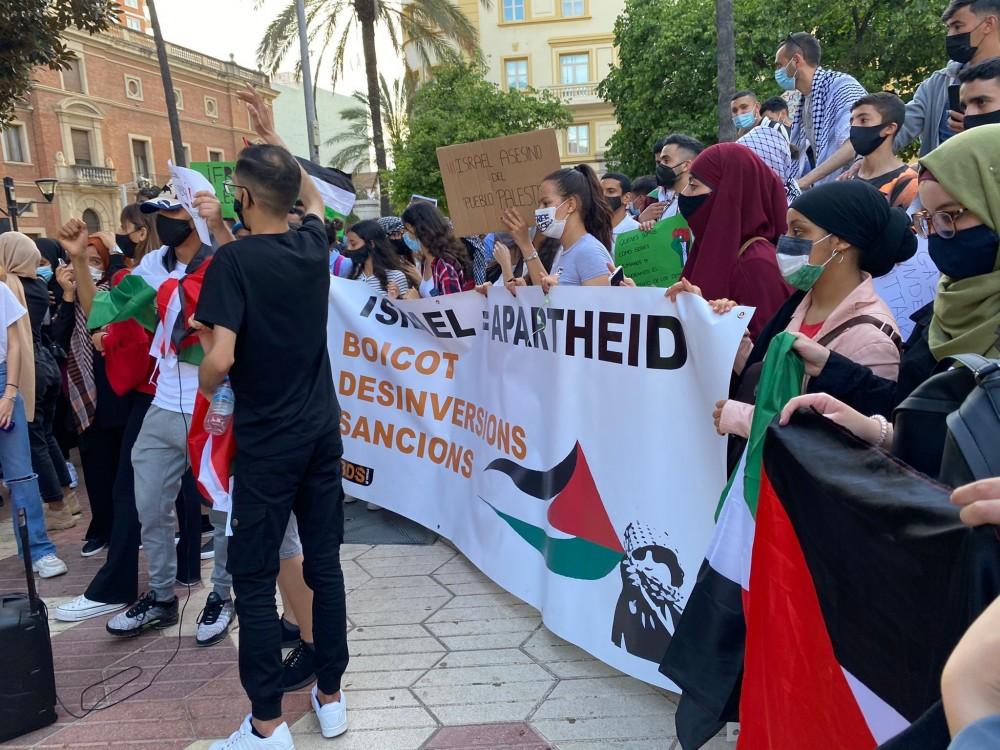 En Castelló el acto tuvo lugar ayer a las 18.30 y los asistentes, la mayoría de ellos jóvenes, tomaron la plaza con banderas y carteles de apoyo, lanzaron consignas a favor del pueblo palestino, pidiendo su libertad y exigiendo el boicot y sanciones para el estado israelí.