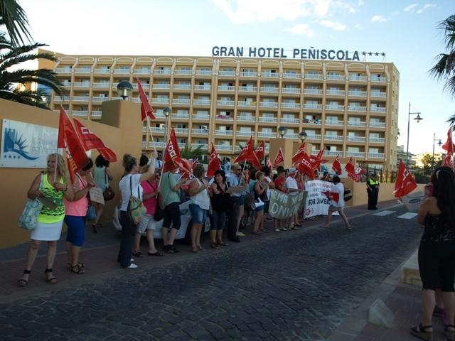 Un gran número de trabajadores del sector de hostelería provincial se concentraron este jueves en el Gran Hotel de Peñíscola, en defensa de una negociación justa.