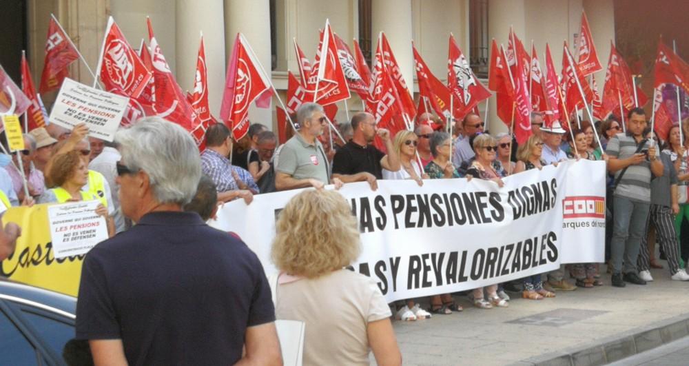 En defensa de las pensiones, hoy, los mayores se han concentrado frente a la Subdelegación del Gobierno en Castellón, convocados por UGT y CCOO, como han hecho en las principales ciudades del país.