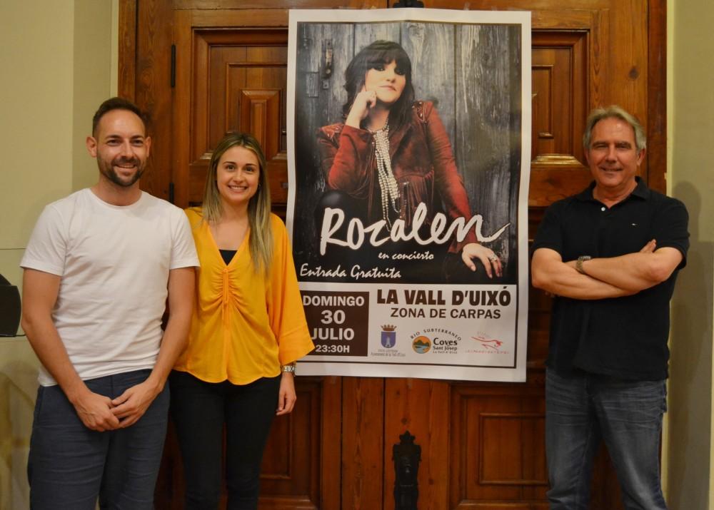 Rozalen estará en concierto en la Vall d'Uixó el domingo 30 de julio, a las 23.30 horas, en el recinto de carpas de Les Penyes en Festes. La alcaldesa, Tania Baños, el consejero delegado de Emsevall, Jorge García, y el concejal de Fiestas, Lluís Diago, han presentado esta actuación gratuita que se enmarcará dentro de la semana grande con el objetivo de abrir la programación a todos los valleros y valleras y atraer a más visitantes.