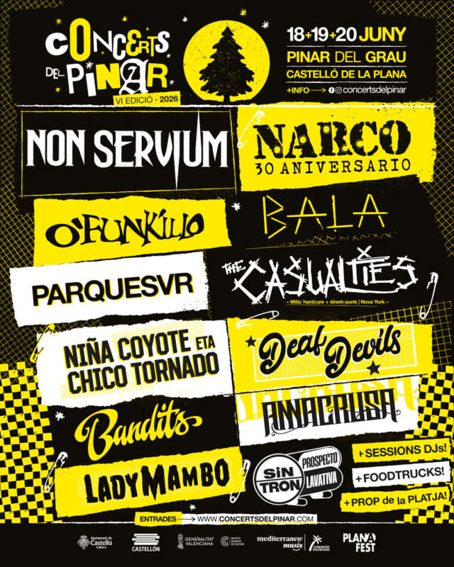 El cartell es completa amb grups nacionals amb una trajectòria consolidada dins de la música punk-rock, com els sevillans Narco, que celebraran al Pinar de Castelló el seu 30 aniversari com a banda referència del rap-metal nacional; el punk autèntic i rebel de Non Servium; O'Funk'illo i la seua gira "2026 Funky Tour", amb què commemoren 25 anys de carrera; el potent duo femení Bala i el seu so rock i grunge; i Niña Coyote Eta Chico Tornado, que presentaran el seu cinqué disc, "Atea".