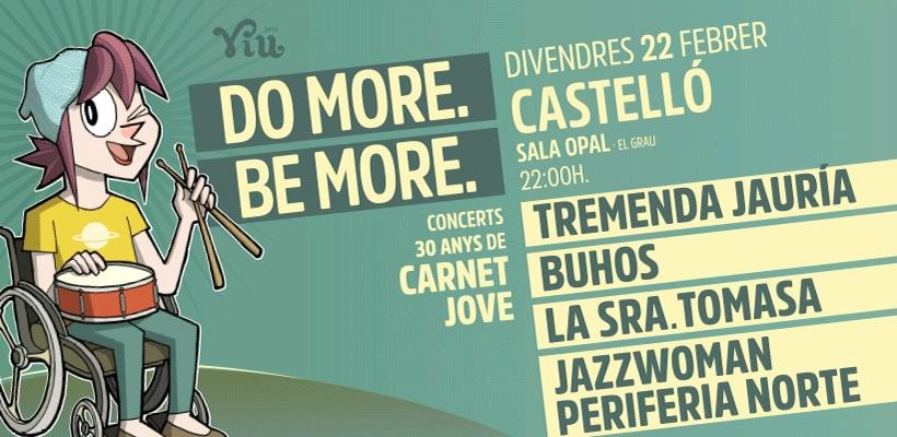 El concierto del 30 aniversario de Carnet Jove se celebra el próximo viernes, 22 de febrero, en la Sala Opal de la capital de la Plana con las actuaciones de Tremenda Jauría, Buhos, La Sra. Tomasa y Periferia Norte y JazzWoman.