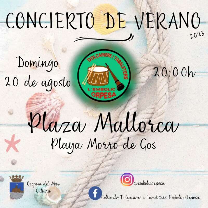 La Plaza Mallorca de Oropesa del Mar resonará este domingo 20 de agosto con la música de la Asociación Cultural Colla de Dolçainers i Tabaleters l’Embolic del municipio. El concierto será gratuito para los asistentes y empezará a las 20.00 horas, con una duración aproximada de 45 minutos.