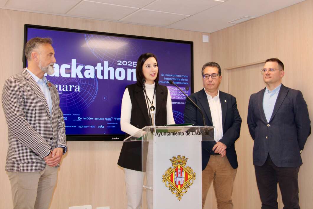 El Ayuntamiento de Castelló ha acogido la presentación de la novena edición del Hackathon Cámara Castellón, el concurso de programadores más importante de la Comunitat Valenciana. Xarxatec, la Asociación de Empresas Tecnológicas de Castellón, organiza por noveno año consecutivo el evento de referencia para el talento digital y la innovación. Los concejales de Modernización y Educación, Francisco Cabañero y María España, han expuesto las principales novedades de este encuentro junto al presidente de Xarxatec, José Bort y el gerente Carlos Jaime.