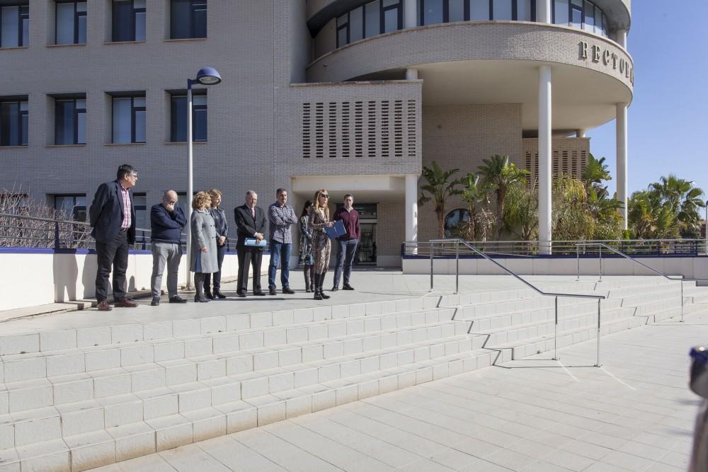 Previamente a los tres minutos de silencio, la vicerrectora de Promoción Lingüística e Igualdad de la UJI, Pilar Safont, ha destacado que «estamos en febrero y ya hemos sufrido la primera víctima de la violencia machista en la Comunidad Valenciana y llevamos 11 en toda España, por eso estamos de nuevo aquí, para decir basta, basta de violencia y no más muertas». También ha recordado ha recordado que «la Universitat Jaume I estará siempre junto a las víctimas y sus familias, en especial hijos e hijas de las asesinadas que quedan traumatizados de por vida por una violencia machista que esta sociedad no está dispuesta a tolerar».
