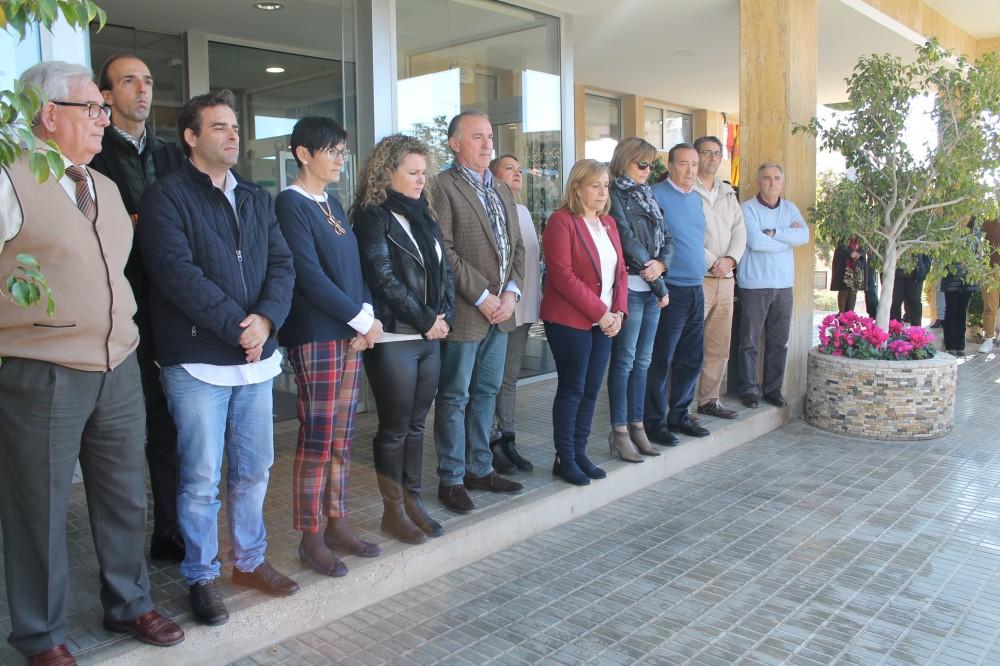Una representación municipal encabezada por la alcaldesa, Maria Josep Safont, se ha concentrado este mediodía en la puerta del Consistorio para sumarse al minuto de silencio, como muestra de repulsa y condena del último asesinato machista de una mujer en Moraira a manos de su pareja.