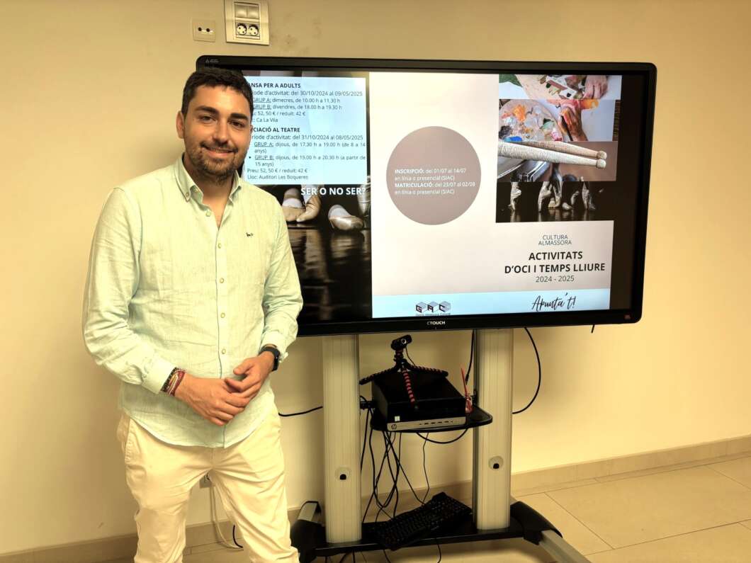 El regidor de Cultura, Vicente Blay Casino, ha remarcat que es tracta d'una completa programació, que busca donar resposta a la demanda formativa i d'oci dels almassorins, tenint en compte diverses disciplines artístiques, pensant sempre en assistents de totes les edats. Casino ha assenyalat que enguany, com a novetat, s'han recuperat les classes d'iniciació al teatre a l'auditori de Boqueres, els dijous, de 17.30 hores a 19.00 hores, per a xiquets de 8 a 14 anys i, de 10.00 a 20.30 hores, per a persones a partir de 15 anys. A més, s'ha ampliat l'oferta de dansa per a adults en Ca la Vila amb un grup els dimecres al matí, de 10.00 a 11.30 hores, i un altre els divendres, de 18.00 a 19.30 hores.