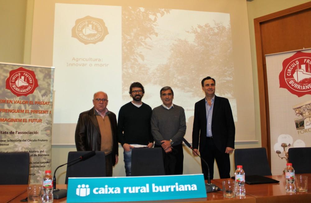 El regidor d'Agricultura de l'Ajuntament de Borriana, Vicent Garcia, ha participat en la conferència sobre Agricultura i Innovació que el Cercle Fruiter Borrianenc i la Cooperativa Agrícola Sant Josep han volgut organitzar durant la vesprada del dimarts en els Salons de la Caixa Rural de Borriana. Ha sigut el periodista i jurista borrianenc, Vicent Franch i el gerent de la Cooperativa Agrícola Sant Josep, Juanvi Moros, els qui han participat tant en la conferència com en el debat i col·loqui en el qual s'ha volgut que també participara el nombrós públic assistent.