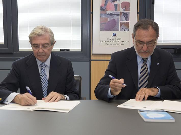 El rector de la Universitat Jaume I de Castellón, Vicent Climent y el presidente de la Sociedad Española de Senologia y Patología Mamaria (SESPM), Carlos Vázquez, han firmado un convenio marco de colaboración por el que se llevarán a cabo acciones conjuntas en el ámbito de las enfermedades relacionadas con la patología mamaria y, en especial, del cáncer de mama. La primera de las actividades será la realización del congreso nacional de la sociedad en el campus castellonense en 2016.