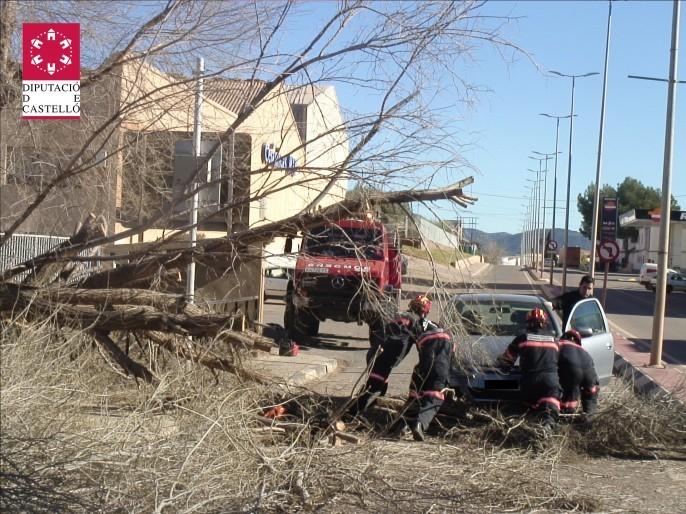 Aunque el aire ya ha aminorado en la provincia, esta tarde el Consorcio de Bomberos de Castellón ha atendido otras cuatro incidencias más relacionadas con el viento; que sumadas a las de esta mañana, suman 32 servicios realizados entre árboles, vehículos, planchas metálicas, paredes, persianas, carteles, toldos y placas solares.