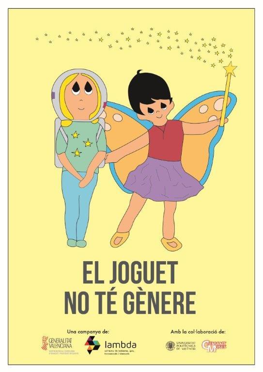 18-1-5_Campana_jugueteLa Vicepresidencia y Conselleria de Igualdad y Políticas Inclusivas ha puesto en marcha, por segunda vez consecutiva y aprovechando las fiestas de Navidad, la campaña publicitaria 'El joguet no té gènere', en colaboración con el colectivo Lambda.