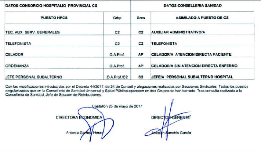 "Con la oposición de la mayoría de la parte sindical, con la única abstención de UGT, votada en Mesa de Negociación, la Dirección anuncia su intención de llevar adelante y tramitar la propuesta de homologación de categorías profesionales del Consorcio con las de la Consellería de Sanidad.