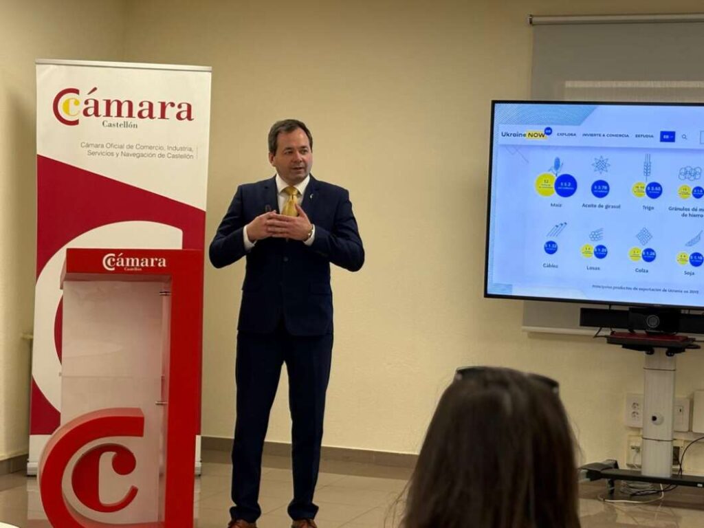 El diplomático ha expuesto ante el tejido empresarial castellonense la situación actual de la economía ucraniana