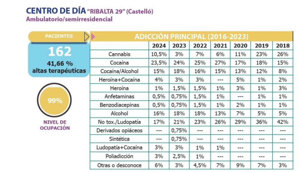Por otro lado, la brecha de género sigue siendo muy evidente en el acceso a tratamiento de la población con adicciones. Las mujeres atendidas en Patim representan el 27% del total de casos. “Ellas suelen solicitar tratamiento más tarde que los hombres, lo que se traduce en perfiles que, en muchos casos, presentan una mayor desestructuración personal y social”, detalla Nerea Martínez, miembro del equipo de la Vivienda de Apoyo al Tratamiento, un recurso único para mujeres que gestiona Patim en Castellón. “Los roles de cuidado, maternidad y responsabilidad familiar incluyen de forma directa en la demanda de ayuda y, a menudo, su situación incluye una red de apoyo muy limitada e incluso la falta de un domicilio estable, lo que empeora todavía más las barreas de acceso y continuidad en el proceso terapéutico”, remarca.