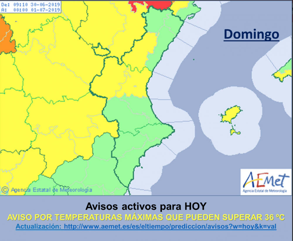 Hoy las temperaturas comienzan a descender, aunque aún superarán los 36 ºC en algunas zonas y por ello está activo el aviso amarillo activado. El aviso en el litoral norte de València se considera para la parte más interior de la zona. La franja litoral tendrá temperaturas mucho más suaves.