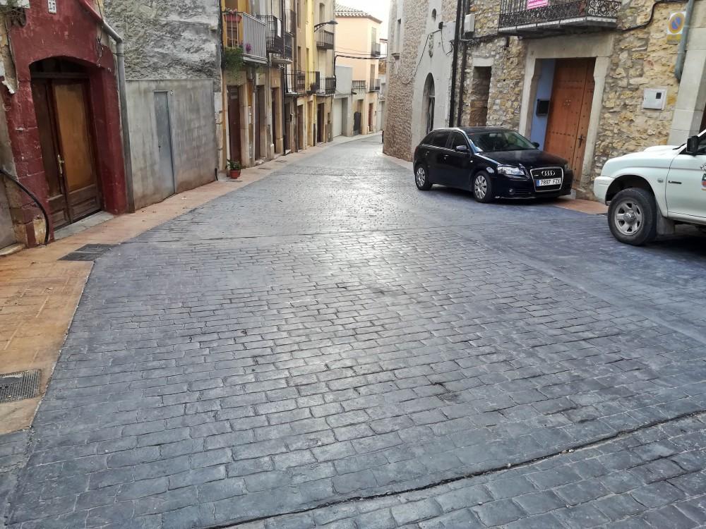 Els treballs que s’han portat a terme han consistit a treure l’antiga pavimentació i canviar-la per una de nova de formigó imprès fins l’altura del carrer d’Enmig, al mateix temps s’han eliminat les voreres i s’ha canviat la xarxa d’aigua potable i del clavegueram.