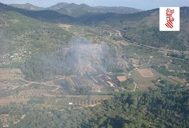 El incendio ha afectado a parte vegetación en la zona de Carboneras, dentro del Parque Natural de la Sierra d'Espadà.