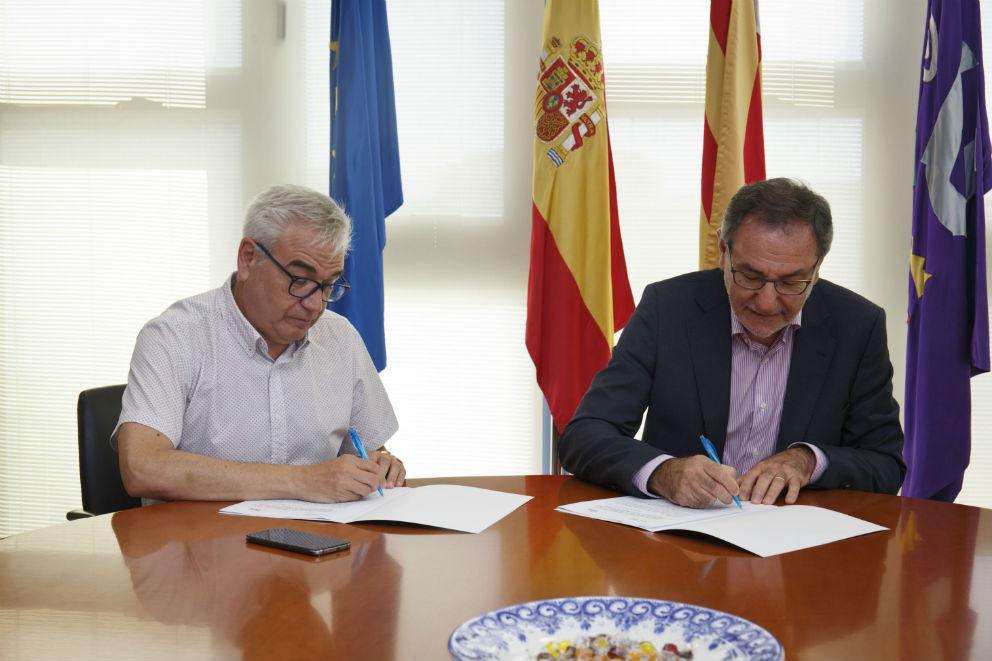 El presidente de la Fundación Isonomia de la Universitat Jaume I, Vicent Climent, y el alcalde de Borriol, Silverio Tena, han firmado un convenio para favorecer las acciones de igualdad en este municipio