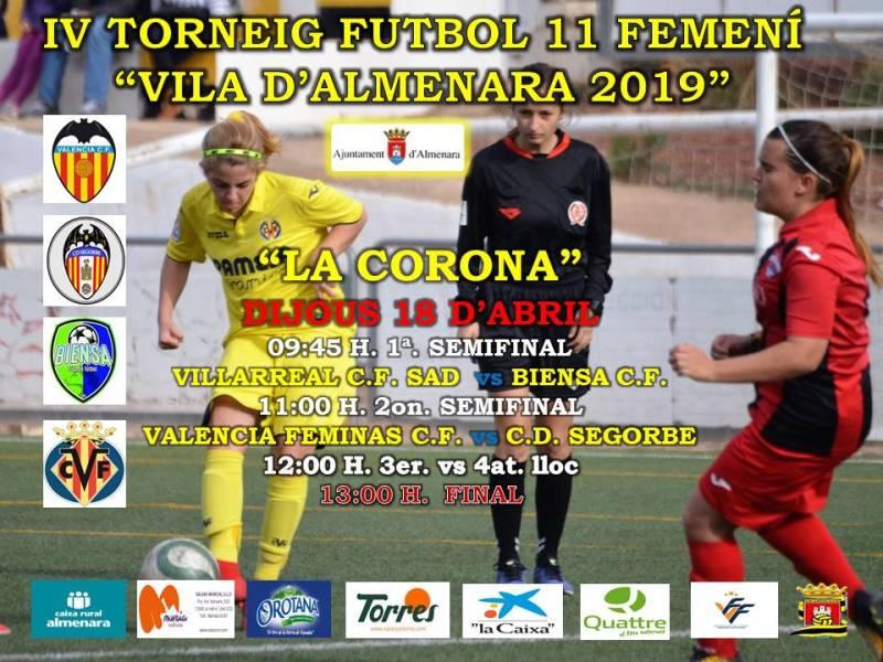 El primer torneo a disputarse, ya convertido en un clásico, será el IV Torneig Femení Vila d'Almenara el próximo jueves con la participación del Villarreal y del Biensa que disputarán la primera semifinal a partir de las 9:45 y del Valencia Féminas C.F. y Segorbe que a las 11 se enfrentarán en la segunda semifinal. A las 12 será el tercer y cuarto puesto y a partir de las 13 horas llegará la gran final. El Valencia Féminas optará a revalidar el título conseguido el pasado ejercicio tras derrotar por 2-1 al Villarreal en la final.