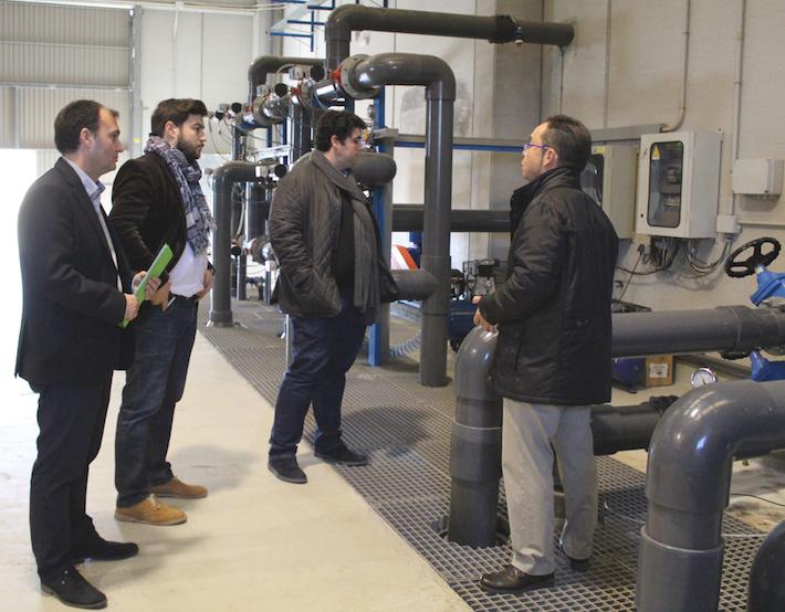 El alcalde de Nules, David García, acompañado por el primer teniente de alcalde y concejal de Urbanismo de la localidad, Adrián Sorribes, ha visitado hoy la planta de ósmosis inversa que FACSA gestiona en el municipio. Instalación donde han sido recibidos por el jefe de la Zona Sur de la compañía, Óscar Peris; así como por el jefe de Servicio, Juan Luis Orenga, quienes han explicado a las autoridades municipales el proceso que se sigue en el interior de la planta para eliminar las impurezas presentes en el agua con el fin de aportarle una mayor calidad.