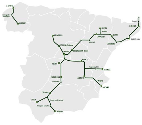 Pero eso sí, la apuesta del Gobierno Central se centra en el desarrollo de: una línea que conecte Portugal con Madrid, y desde allí pueda salir a Europa a través de Zaragoza y Barcelona, o del país Vasco; y en una línea que ellos denominan también, como Corredor Mediterráneo, pero el otro, porque partiría de Algeciras, pero bordearía la península hasta Valencia y desde allí, se iría a Madrid o Zaragoza para salir a la frontera por la comunidad Catalana o el País Vasco.