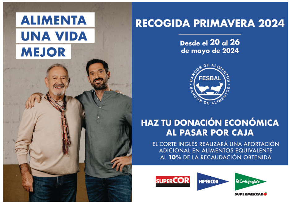 El Grupo El Corte Inglés se une de nuevo a la Campaña 'Recogida Primavera' de Alimentos, a favor de los 54 Bancos asociados a la Federación Española de Bancos de Alimentos (FESBAL), que se celebrará del 20 al 26 de mayo en todos los establecimientos de la cadena en España, y que se realiza a beneficio de las personas más desfavorecidas, en riesgo de exclusión social, para que puedan acceder a una alimentación digna.