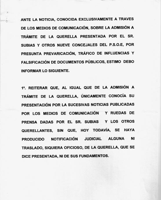 La querella del Grupo Socialista también generó el rechazo de algunos socialistas de renombre. Pero, además, ponía ‘en la picota’ no solo a los políticos del PP, sino a los funcionarios municipales y a una trabajadora de la Caja Rural. No fue una querella bien recibida entre el personal del Ayuntamiento, ni entre las filas del mismo partido socialista.