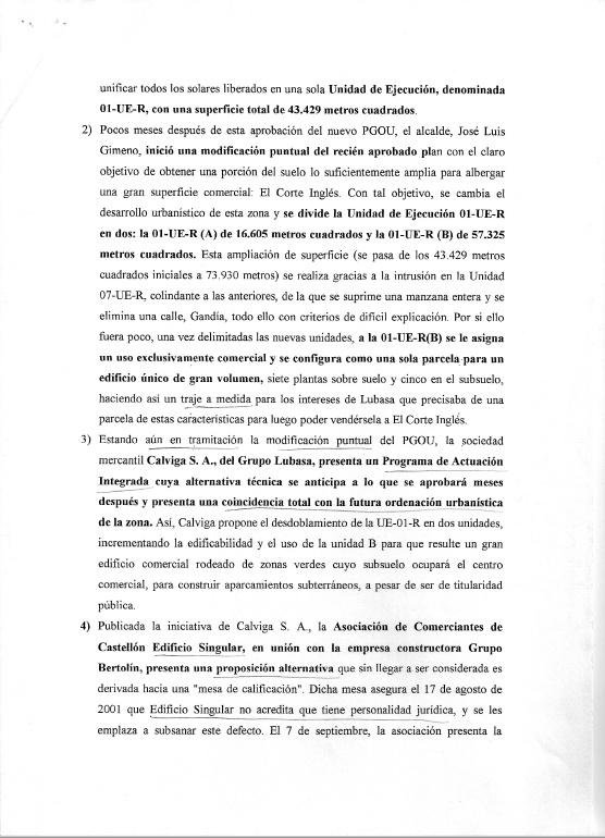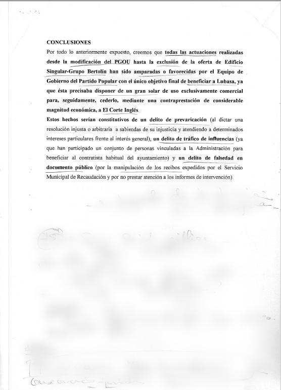 En su acusación planteaban que, si el ayuntamiento hubiera optado por la expropiación de los terrenos de la vía, hubieran conseguido plusvalías por más de 18,3 millones de euros que habían arrebatado a la ciudad… solo el solar donde se iba a afincar El Corte Inglés, entendían, hubiera alcanzado un valor que superaba los 192.000 euros. Con la figura del urbanizador, Renfe había obtenido 50 millones de euros.
