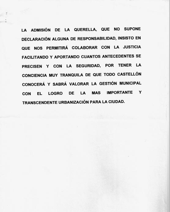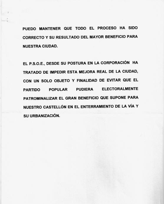 Fuentes municipales indicaron, que el documento de Calviga, que se apercibió del error, llevaba anexa una notificación notarial que certificaba la veracidad del pago en el 2001 (notificación que figura en la documentación de la que dispone Castellón Información).