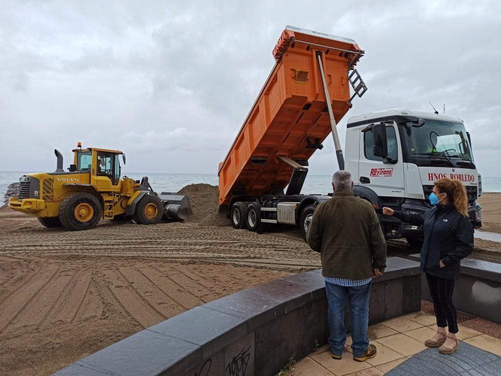 La Dirección General de Costas ha iniciado esta mañana los trabajos en las playas de Benicàssim para reparar los daños causados por el temporal Gloria y que fueron paralizados tras la declaración del estado de alarma el pasado 14 de marzo. Como ha explicado la concejala de Playas, Elena Llobell, en primera instancia Costas realiza aportaciones de arena “y tras ello los operarios municipales son los encargados de distribuir la arena en distintos puntos del litoral”.
