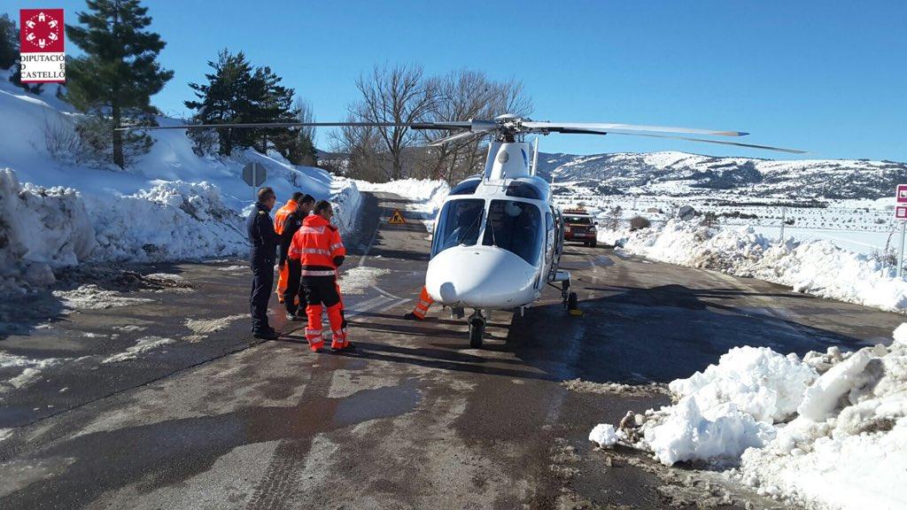eliminando nieveConcretamente, esta mañana se ha procedido al rescate de un masovero enfermo que había quedado aislado en la vecina localidad de Vistabella. El paciente ha sido rescatado por una unidad de bomberos forestales de la Generalitat coordinado por el CPBC hasta un helicóptero medicalizado que lo ha trasladado al hospital más cercano.