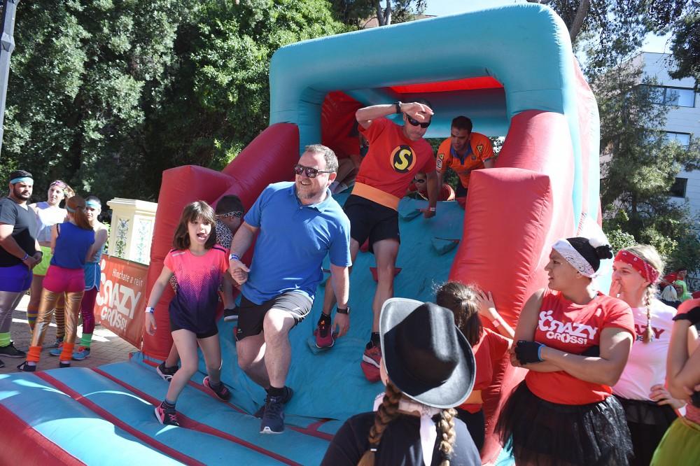 Pequeños y mayores han disfrutado esta mañana de la carrera "más loca", un evento para todos los públicos donde superar obstáculos se convierte en una tarea de lo más divertida. La segunda edición de la Crazy Cross ha vuelto a Castelló, esta vez en el Parque Ribalta, donde los participantes se han enfrentado a más de medio centenar de yincanas y obstáculos hinchables por los que han tenido que trepar, reptar y saltar. El ayuntamiento, a través de la concejalía de Juventud, patrocina esta carrera que consta de una doble acción social.