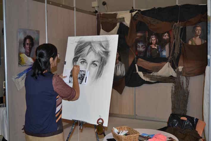 Ambiente feriaLa VII Semana del Arte Marina d’Or ha vivido este sábado su jornada central con un programa cargado de actividades varias, talleres y, sobre todo, mucho arte en vivo. Los artistas Álex Alemany, Mari Carmen López Olivares, Pepe Mingol, Sara Bellés, Ana Beltrán, Santi Tena, Francisco Oficial, Tere Colomé. Àngels Romero, Juan Pore, Ángel Igual, Jose Ferrer, Conxa Bou, Raimundo Folch y Salvador Nadal, junto a la editorial Unaria Ediciones, han protagonizado un sinfín de propuestas para todos los públicos. Desde los más pequeños de la casa hasta los espectadores más exigentes la Semana del Arte ha mostrado todo su potencial en una edición que está cosechando los mayores elogios de su trayectoria. El grupo Artia, Carmen Almagro o Xoán Villarmea son algunos de los más aplaudidos.