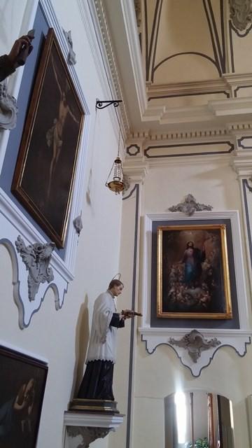 En concreto, se trata de las obras 'El Salvador', de José Moreno Torres, s. XIX, óleo sobre lienzo; 'Éxtasis de Santa Teresa', anónimo, s. XVII, óleo sobre lienzo; 'Cristo Crucificado', anónimo, s. XVII, óleo sobre lienzo, 176x119 cm; 'Inmaculada', anónimo, s. XVIII, óleo sobre lienzo, 178x126 cm; 'Santa María Magdalena', anónimo, s. XVIII; 'San Luis Gonzaga' y 'San Bartomolé', obra de Enrique Giner; y 'Soledad', anónimo, s. XVI, oleo sobre lienzo, 142x106 cm. Esta última, con un singular interés para Nules, ya que recoge la imagen de la Soledad realizada por Gaspar Becerra y, viéndola, se puede comparar con la imagen de la Soledad que, según tradición del s. XIX, llevó a la Vila de Nules Felipe II.