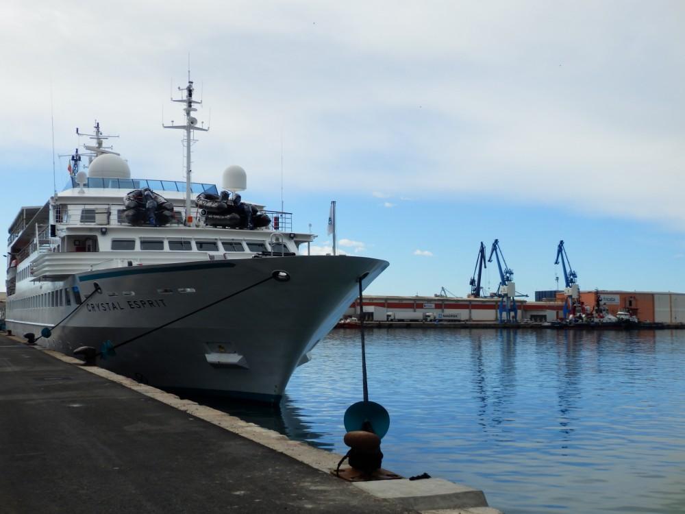 A las 8.30 de la mañana el crucero de lujo Crystal Esprit ha hecho escala en el muelle de Levante de PortCastelló. Es el primero en la historia del puerto en atracar junto a la zona lúdica del muelle de Costa, gracias a su tamaño, más pequeño que el de otros cruceros.