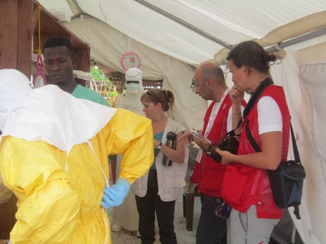 Los delegados de Cruz Roja madrugaban  para  llegar al centro de tratamiento en Kenema, nos narra este delegado internacional, y antes de introducirse en la zona de riesgo, cada día se repetía el ritual de vestirse para la intervención, siempre bajo la vigilancia de otra persona, para no bajar la guardia y cumplir  a  rajatabla con el protocolo. Un descuido podría resultar letal.  Tras el intercambio de información con el equipo saliente  se iniciaba  el trabajo, en su caso de prevención y control de la infección, para dar paso a la planificación del día siguiente.