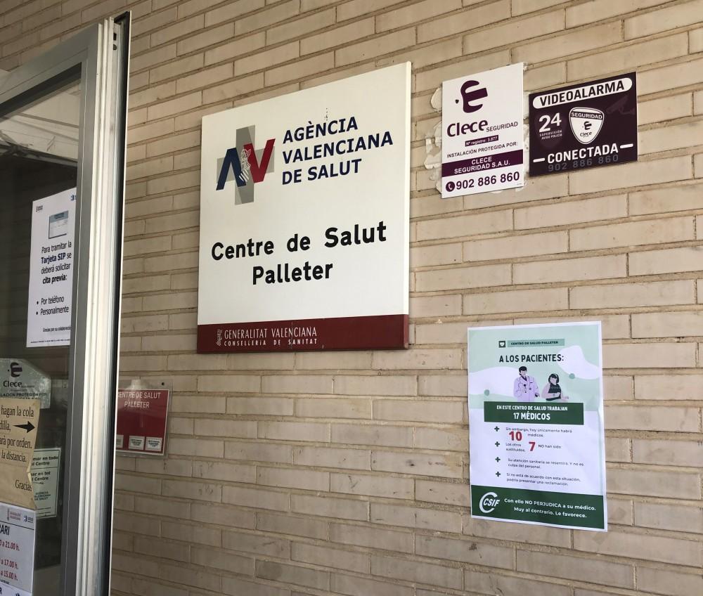 La Central Sindical Independiente y de Funcionarios CSIF ha denunciado que, debido a la situación de colapso y saturación que sufre el centro de salud de Palleter y a la elevada presión asistencial, en estos momentos la mitad de los profesionales sanitarios que prestaban servicio en esta instalación sanitaria de Castellón se encuentra de baja.