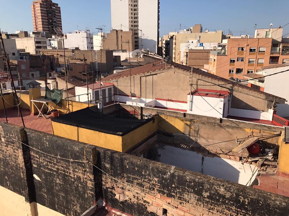 Cuatro familias residentes en la calle San Francisco de Castellón hubieron de ser desalojadas cuando cedió y se hundió la cubierta del edificio. El siniestro se produjo en la noche del sábado 15 de julio.