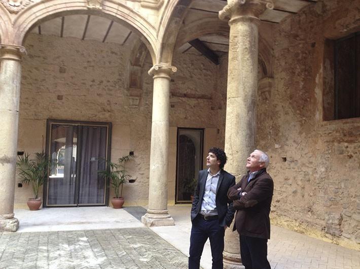 El secretario autonómico de Cultura y Deporte, Albert Girona, y la directora general de Cultura y Patrimonio, Carmen Amoraga han visitado esta mañana, acompañados por el alcalde de Betxí, Alfred Remolar, las obras de restauración y recuperación del entorno del Palacio Castillo de los Condes de Alzira de la localidad de Betxí.