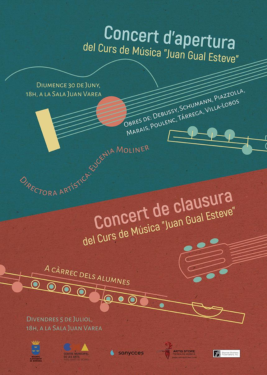 El pròxim diumenge, dia 30 de juny, a les 18 h, a l'Auditori Juan Varea, tindrà lloc el Concert d'apertura del Curs de música Juan Gual Esteve que, sota la direcció artística de la reconeguda flautista borrianenca Eugenia Moliner, celebrarà la seua segona edició la pròxima setmana a Borriana, i més concretament, a les instal·lacions del Centre Municipal de les Arts Rafel Martí de Viciana. El concert que dóna inici al curs s'obrirà amb la interpretació de Claire de lune de Claude Debussy a càrrec d'Alexander Moliner-Azagabic al piano, seguidament Luis Arias, també al piano, amb Peces op. 111 de Robert Schuman. Continuarà el concert amb Eugenia Moliner, acompanyada al piano per Alexander Moliner-Azagabic, amb el primer moviment, Allegro malencolico, de la Sonata per a flauta i piano de Francis Poulenc. Tancaran el concert amb la interpretació de dues obres Eugenia Moliner, a la flauta, i Denis Azagabic, a la guitarra, o cosa que és el mateix, Cavatina Duo, que tocaran Folies d'Espagne de Marin Marais i Historie du tango d'Astor Piazolla. L'entrada serà gratuïta fins a completar l'aforament.