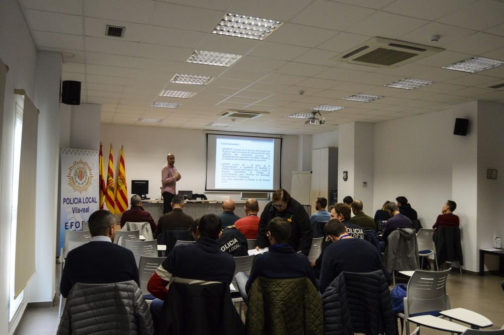 S’ha celebrat la 'Intervenció policial amb Targetes d'Estacionament per a Persones amb Mobilitat Reduïda', que ha tingut lloc aquest matí a la sala EFOPOL de la Policia Local. La formació, impartida per Fernando Arnal, de la Policia Local de Torrent, ha tractat sobre la normativa vigent sobre les targetes d'aparcament i com detectar-ne les no originals.