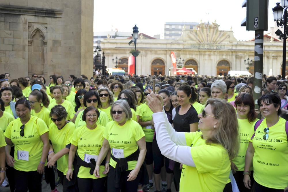 Más de 3.300 mujeres han tomado esta mañana las calles de la ciudad de Castellón en la XIII Cursa de les Dones para reivindicar juntas y unidas una igualdad real entre hombres y mujeres. Un año más, la respuesta de las mujeres que se suman a esta carrera reivindicativa ha colmado las expectativas de la organización, que aún habiendo aumentado en 1.000 unidades el número de camisetas previstas hasta las 3.000, han hecho corto.