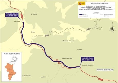 El Puerto del Querol, en la carretera N-232, es la principal vía de comunicación entre las comarcas castellonenses del Maestrazgo y de Els Ports y la aragonesa del Bajo Aragón. Esta carretera, en el tramo entre Barranco de la Bota y Masía de la Torreta, dispone de una plataforma de sección estricta, en torno a los 6-7 m, sin arcenes, y presenta un gran número de curvas de radio reducido. El segmento más problemático se presenta en la subida del Puerto del Querol, ya que a los factores anteriores se unen la pronunciada inclinación de la rasante (que llega a superar puntualmente del 10%) y, en ocasiones, las desfavorables condiciones de vialidad en invierno, al situarse en una zona con cotas en el entorno de los 1.000 m sobre el nivel del mar.
