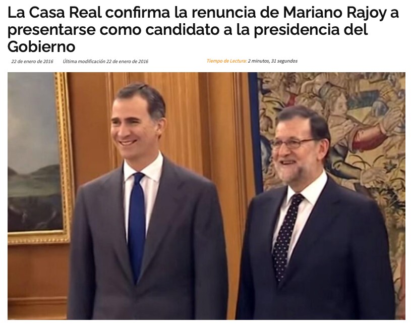 Los resultados e las elecciones del 20D de 2015 habían sido insuficientes para que Mariano Rajoy aceptara el encargo de intentar formar Gobierno y tras numerosas reuniones del rey con los portavoces políticos se convocaban nuevas elecciones generales el 26 de junio de 2016.