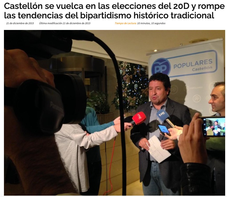 En la provincia de Castelló el PP obtuvo dos diputados, Compromís- Podem lograba 1, PSOE lograba 1 y Ciudadanos se estrenaba también con uno.