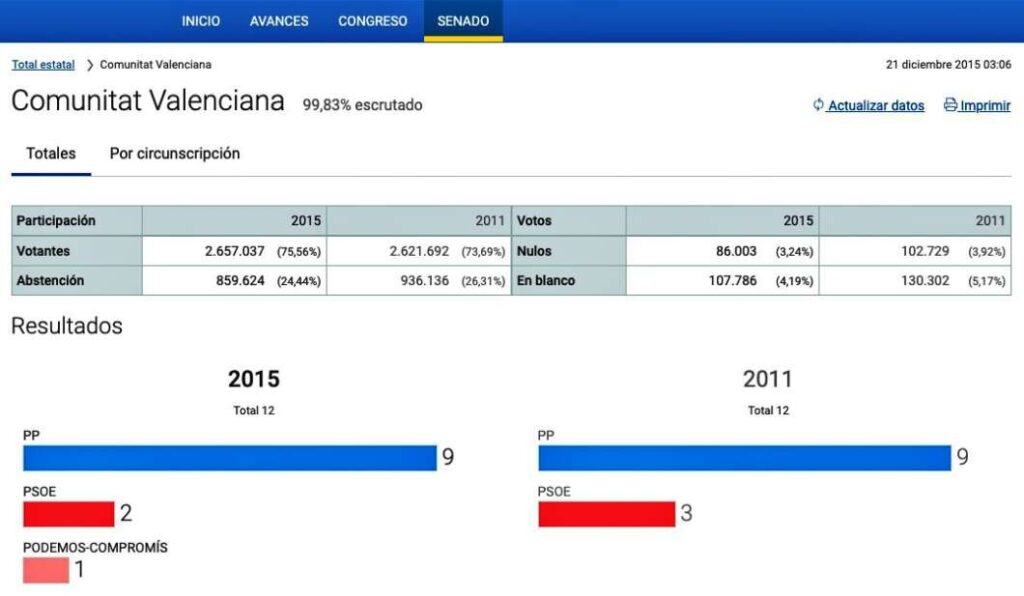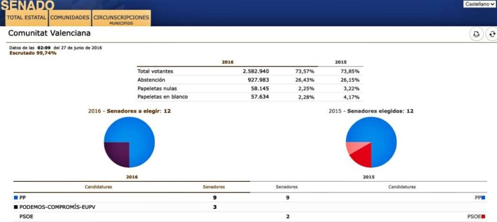 En el Senado fue todavía peor porque PP conseguía 9 representantes y Podemos-Compromís-Eupv, 3.